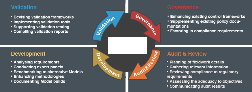 We too provide expert support model risk reviewing. At Auriscon, we have suitable expertise and we enable knowledge transfer based on in depth industry practice.For further details, feel invited to browse through an outline of supported activities summarized below. For inquiries on support towards a succesful project outcome contact us.